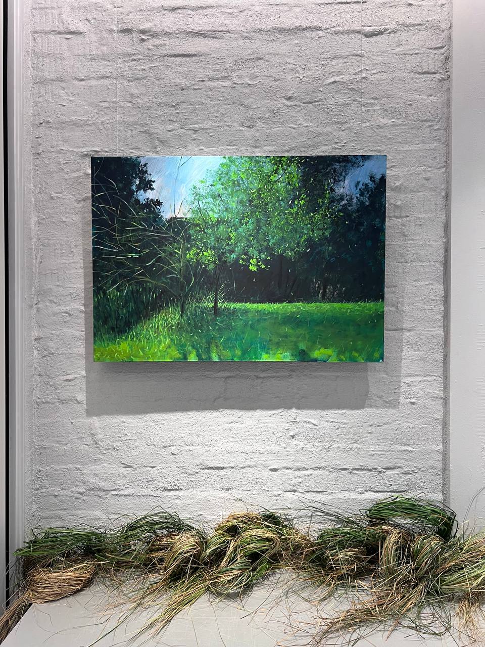 "This exhibition is a declaration of love for my dacha. It is a piece of forest with two clearings and a small house nestled between them. It's a place where squirrels leap, hedgehogs wander, and peonies bloom. It is my escape from the city to ground myself: I saw branches, I dream, and I write plays. Every year at the dacha, I reread Sasha Sokolov's 'A School for Fools' — it is the ultimate summer book. The novel's protagonist is a dreamer who calls himself Nymphaea Alba, after the forest lily. It is through his eyes, brimming with love and tears, that I see afresh each summer the apple trees and pines, the flowers, the dragonflies, the night sky. It is in his name that this exhibition is titled — a dedication to all dreamers of the countryside and those enchanted by the beauty of flowers in shades of malachite, chartreuse, and shamrock." MOKH is a multifunctional cultural space that opened in February 2023 as the Moscow representative office of the St. Petersburg-based landscape architecture bureau MOKH, founded by Dmitry Golubev and landscape architect Yuri Fomenko.