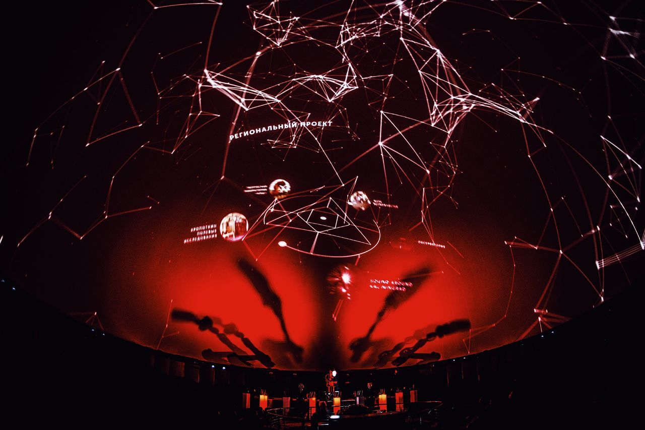 The award ceremony for the State Prize in Contemporary Art took place at the Planetarium. Above the guests, a mesmerizing spectacle unfolded across the starry sky—comets streaked by, constellations formed from the nominees and winners, and vibrant, living images by Viktor Pivovarov came to life. All of this was set to the evocative music of Théodore Kurentzis' orchestra, transforming the event into a celestial celebration of art and imagination.