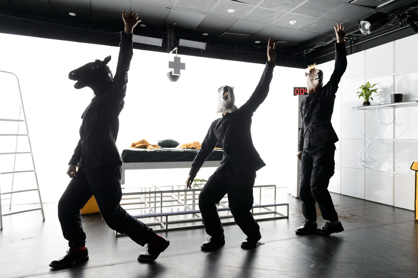 Marina Brusnikina’s play is a space of experimentation—a forging of new neural connections—where the audience becomes an object of exploration as well. The two plays by Dmitry Danilov are performed simultaneously on the Main and Small Stages of Teatr Praktika. Upon entering the theatre, audiences are randomly assigned to different halls, and after the intermission, they switch and meet the other storyline. Thus, the plays engage in a dialogue, intertwining and continuing each other, painting a picture of a world governed by absurd laws but unmistakably echoing real life.